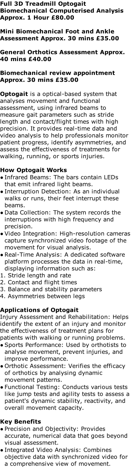 Home | Location | Treatments | Fees | 3D Gait Analysis | Custom Orthotics | Shockwave Therapy | Buy a Gift Voucher | Buy Products Online | Request an Appointment