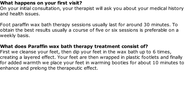 As Paraffin works more effectively over time if you initially book and pay for 5 treatments you get the 6th session free (£125.00 Total)
